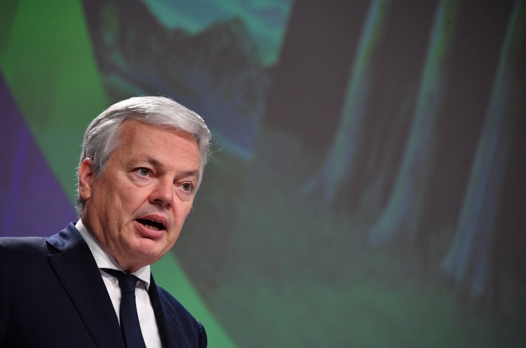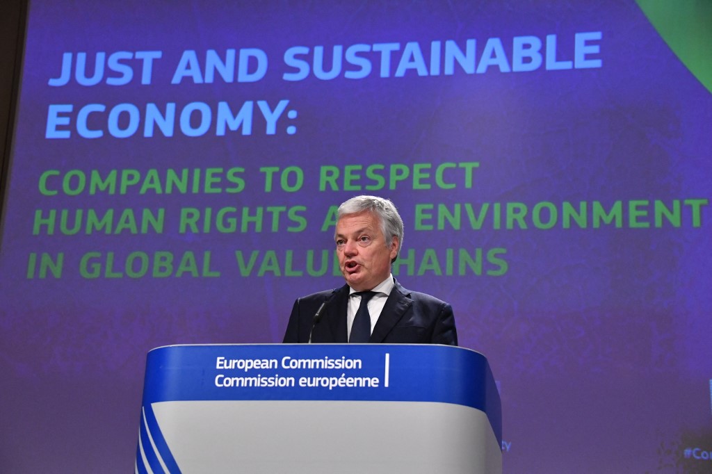 European Commissioner for Justice Didier Reynders gives a joint press conference with the European commissioner for Internal Market on the Corporate Sustainability Due Diligence draft law at the EU headquarters in Brussels on February 23, 2022. – The EU’s Corporate Sustainability Due Diligence draft legislation aims at making companies accountable for environmental and human rights violations in their production chain. (Photo by JOHN THYS / AFP)