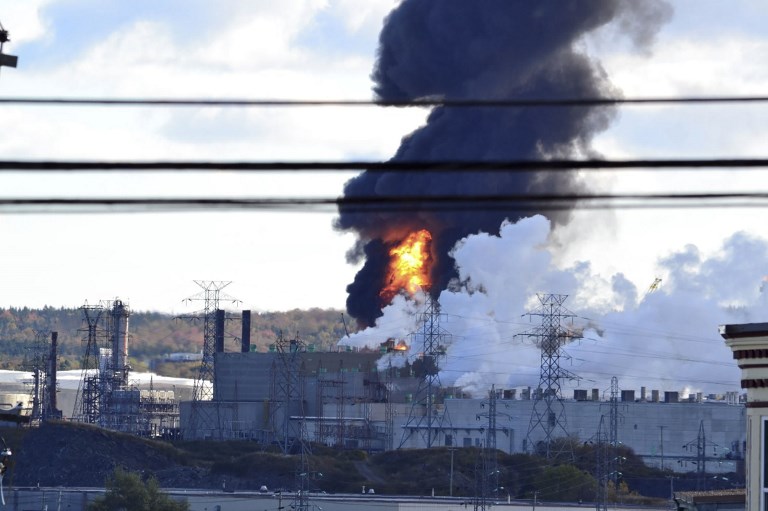 An explosion and fire ripped through an Irvine Oil refinery October 8, 2018 in the Canadian province of New Brunswick, local media reported. It was not known if there were casualties. The company confirmed on Twitter that a “major incident” occurred at its refinery in St. John’s, New Brunswick.”We are actively assessing the situation at this time and will share more information when available,” it said.Images posted on social media networks showed flames and a column of black smoke rising from the refinery./ AFP PHOTO