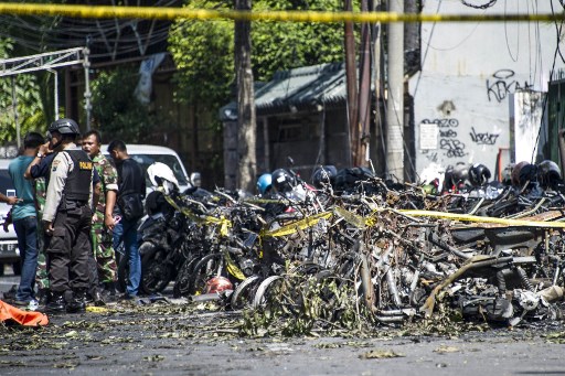 SURABAYA, Indonesia (AFP) — Four militants on motorcycles blew themselves up at a police headquarters in Indonesia’s second city Surabaya on Monday, police said, wounding at least 10 people including officers a day after a deadly wave of suicide bombings hit churches.