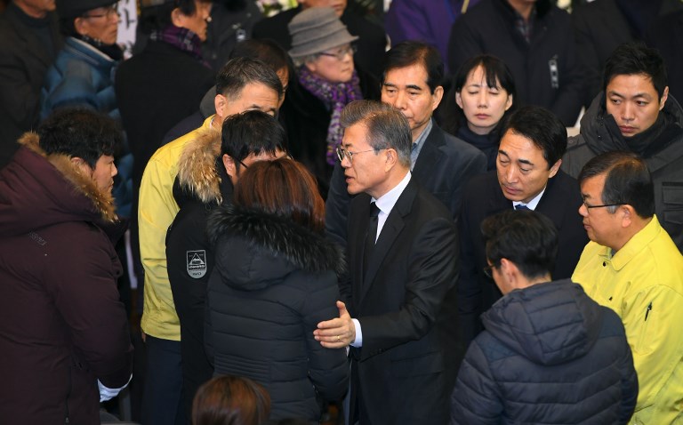 President Moon Jae-In visited Saturday the altar to console grieving relatives and promised to improve safety regulations after inspecting the gutted hospital.