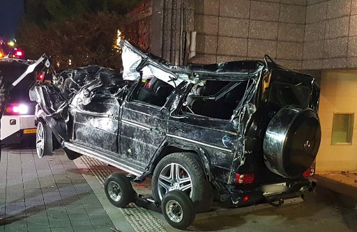 Kim Joo-Hyuk, 45, died Monday from head injuries after his Mercedes crashed into an apartment wall and flipped over. No other vehicles were involved, police said.