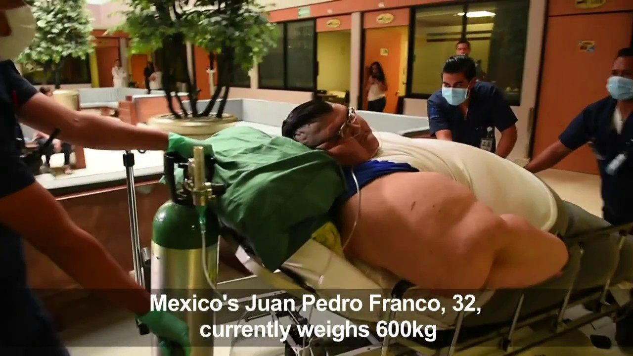 A Mexican who weighs more than half a ton gets ready to receive surgery to lose weight.