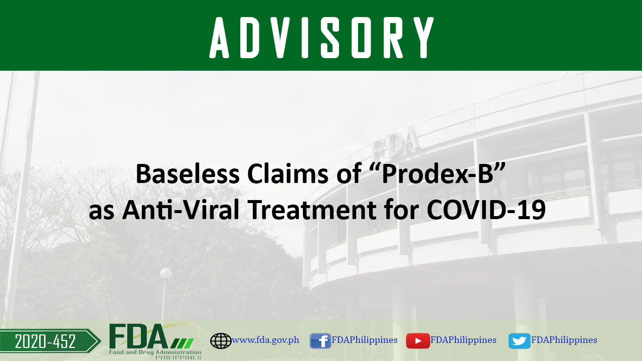 “The drug combination of Procaine and Dexamethasone with Vitamin B called ‘Prodex-B’ is circulating in various media platforms and claims it has promising effects against viral infections and diseases. However upon verification, the drug product “Prodex-B” is unregistered in this Office”, the advisory read.