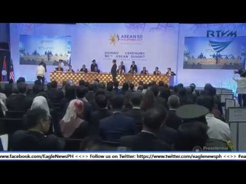 Philippine President Rodrigo Duterte together with the other Association of Southeast Asian Nations (ASEAN) Heads of State/Government gather at the Meeting Room 1 of the Philippine International Convention Center (PICC) in Pasay City to seal the “ASEAN Declaration on the Role of the Civil Service as a Catalyst for Achieving the ASEAN Community Vision 2025”, in a signing ceremony during the 30th ASEAN Summit on April 29, 2017.