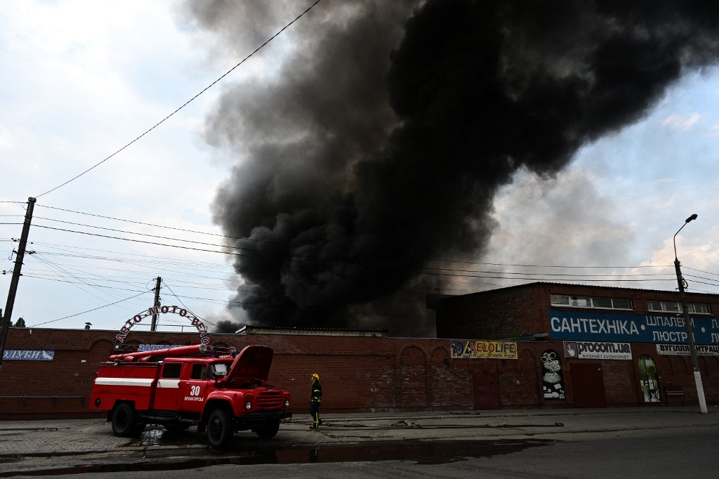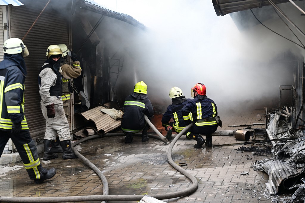 AFP journalists on the ground saw rockets hit the marketplace and several adjacent streets, as firefighters scrambled to put out the resulting fires in the city, which had a pre-war population of around 100,000.
