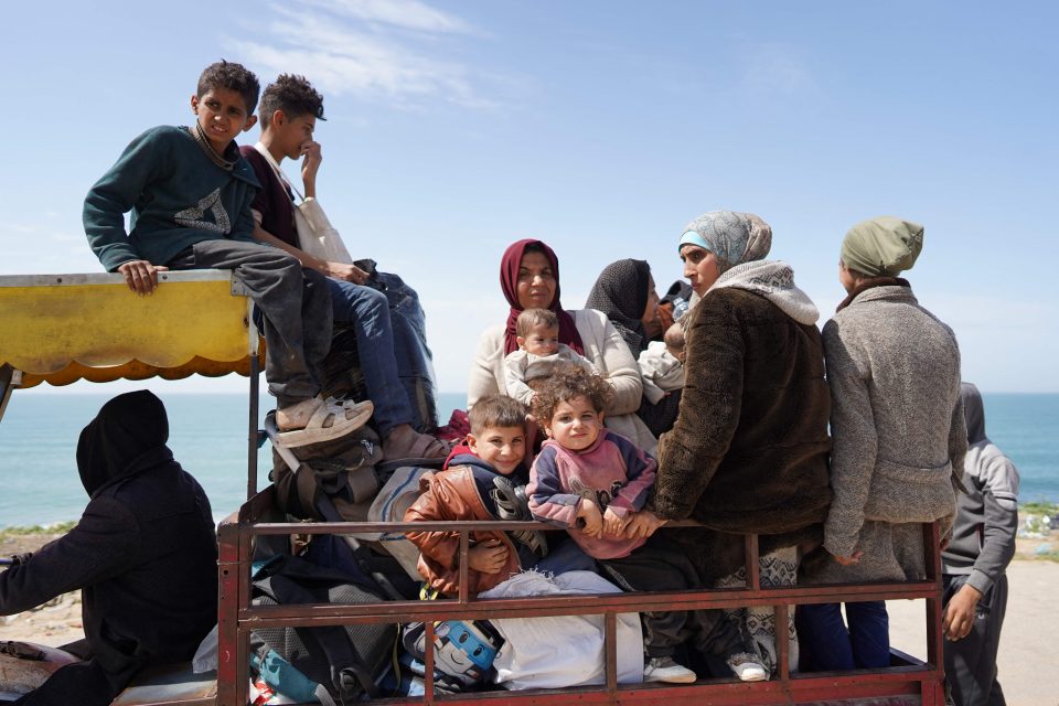 People who fled the Al-Shifa hospital and its vicinity in Gaza City are driven from the central Gaza Strip further south, on March 21, 2024. Israel’s army was on March 21 four days into a raid at Al-Shifa, Gaza’s largest hospital, where the military says Hamas was operating from among patients and displaced civilians. (Photo by AFP)