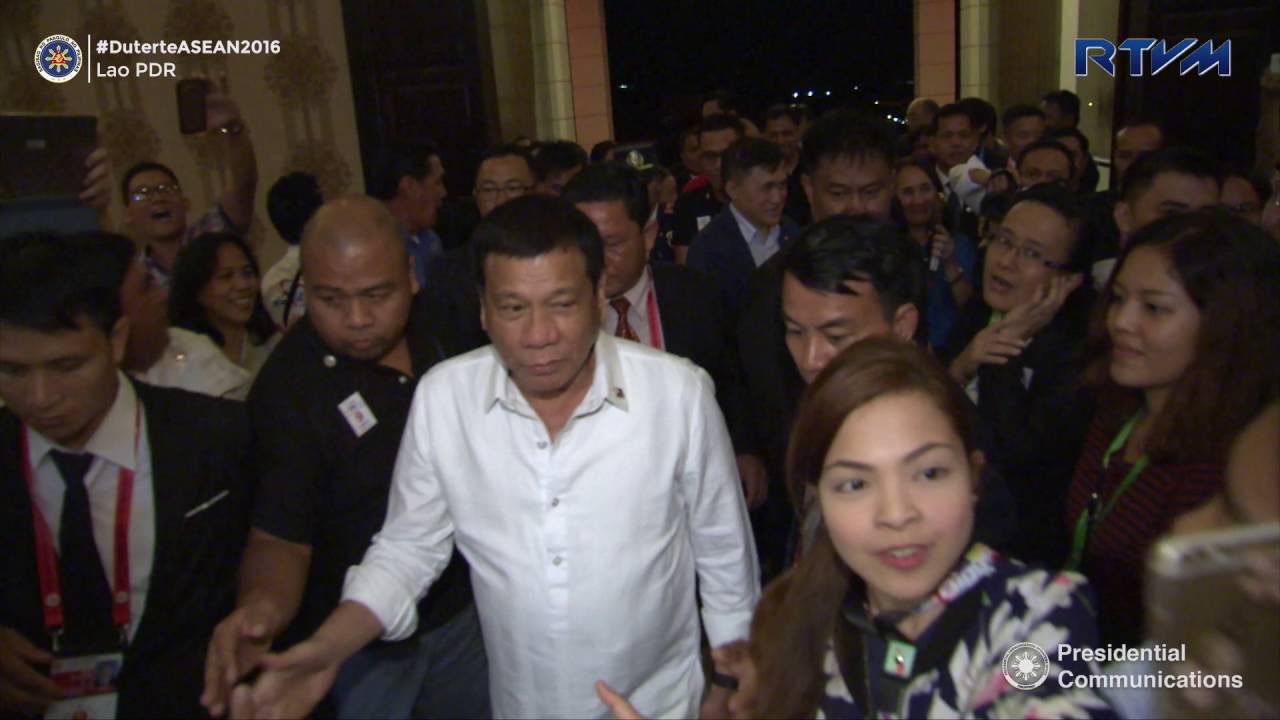 The Philippine community in Laos welcomed President Duterte upon his arrival in Vientiane to attend the 28th and 29th ASEAN Summit