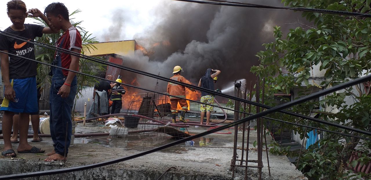 Authorities attempt to put out the fire that hit a residential area in Quezon City on Tuesday, March 5. /Roger Manzano/Eagle News/