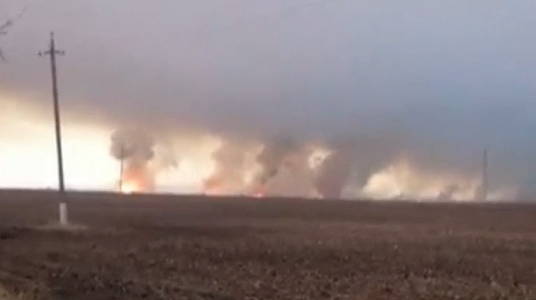 KHARKIV, Ukraine (Reuters) — A massive fire broke out on Thursday (March 23) at an arms warehouse in the east Ukrainian province of Kharkiv.