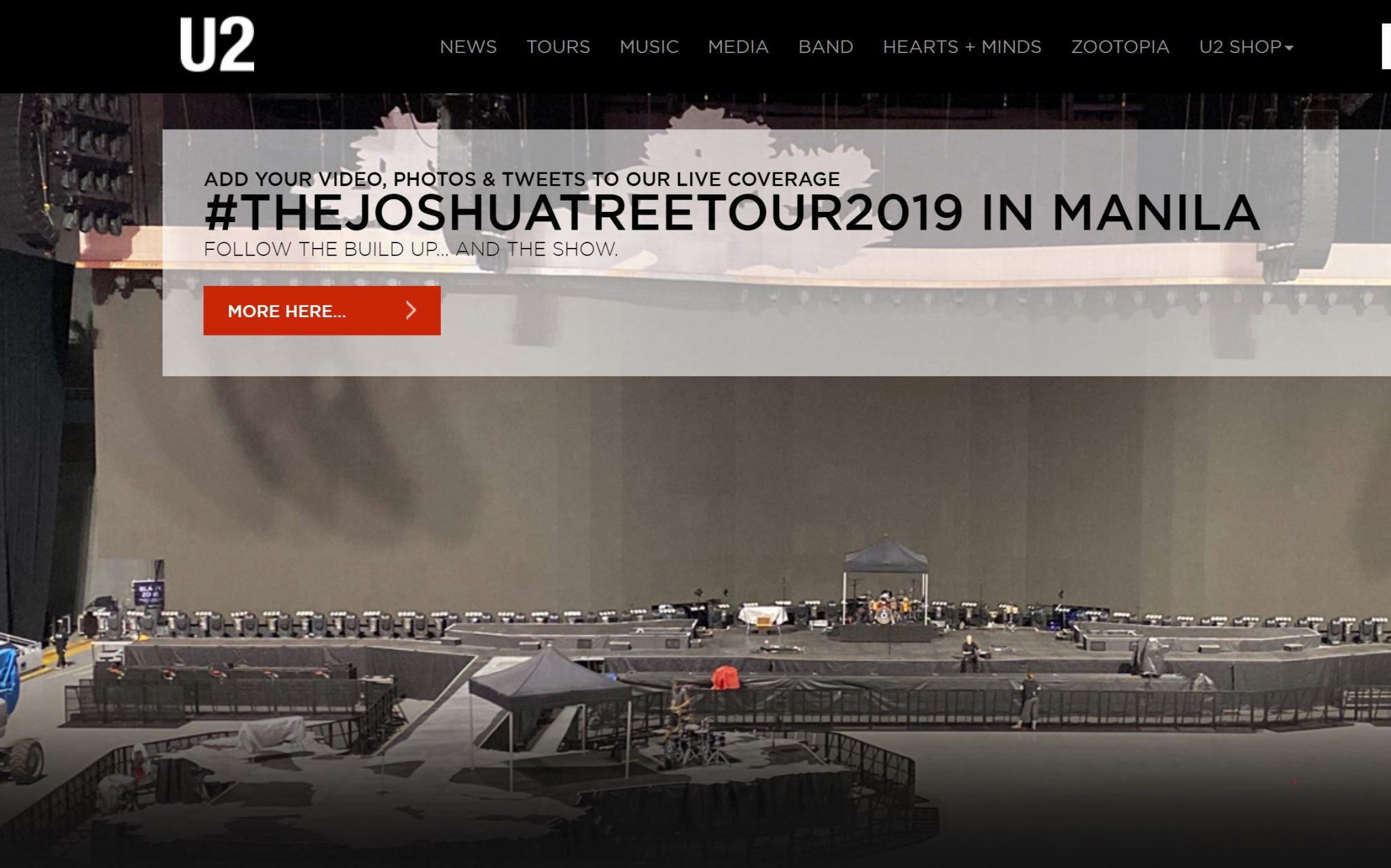 U2, in its website, urged their fans to “use #TheJoshuaTreeTour2019 when uploading to social networks,” so they can “highlight the great content coming direct from fans on show day.”