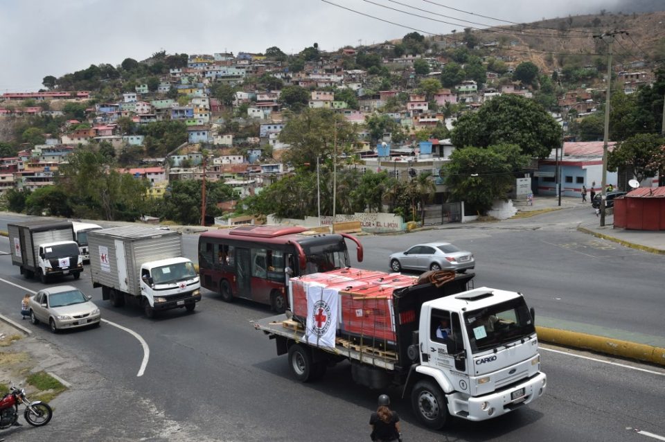 Some 30 trucks moved the supplies from the Maiquetia airport to a Venezuelan Red Cross collection center in Caracas, AFP journalists said.
