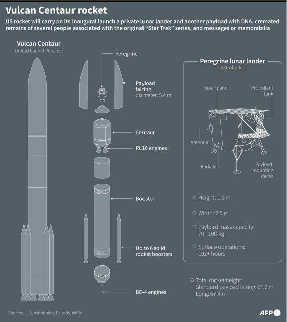 A brand new rocket, United Launch Alliance’s Vulcan Centaur, lifted off from Cape Canaveral Space Force Station in Florida at 2:18 am (0718 GMT) for its maiden voyage, carrying Astrobotic’s Peregrine Lunar Lander.
