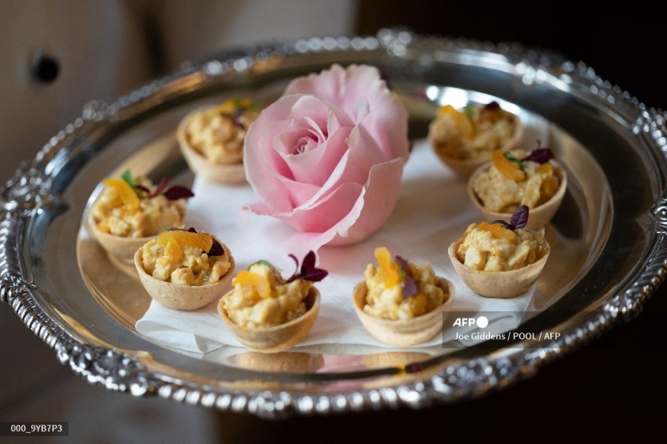 Coronation chicken vol-au-vents at a reception for Queen Elizabeth II (Photo by Joe Giddens / POOL / AFP)