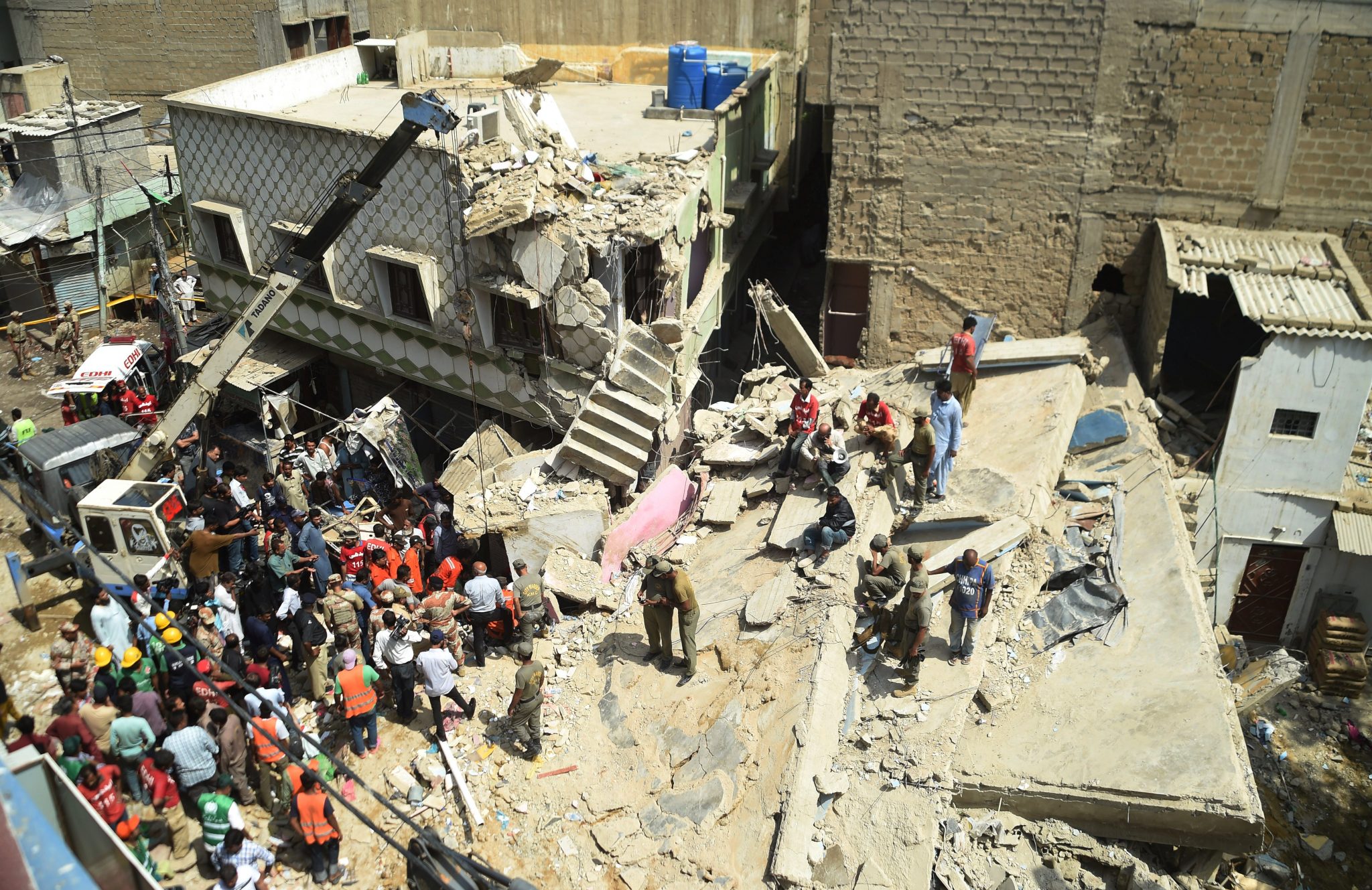 Rescuers struggled to pull survivors from the rubble of the three-storey building in the southern city of Karachi.
