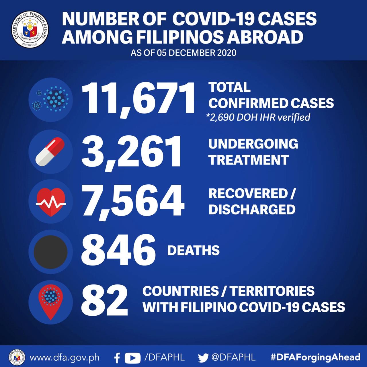 An additional case from the Asia Pacific pushed the COVID-19 total among overseas Filipinos to 11,671.