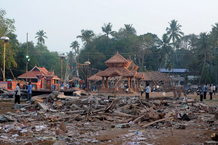 The blast ripped through concrete buildings at a Hindu temple complex in Kerala state where thousands had gathered on Saturday night to watch the display.