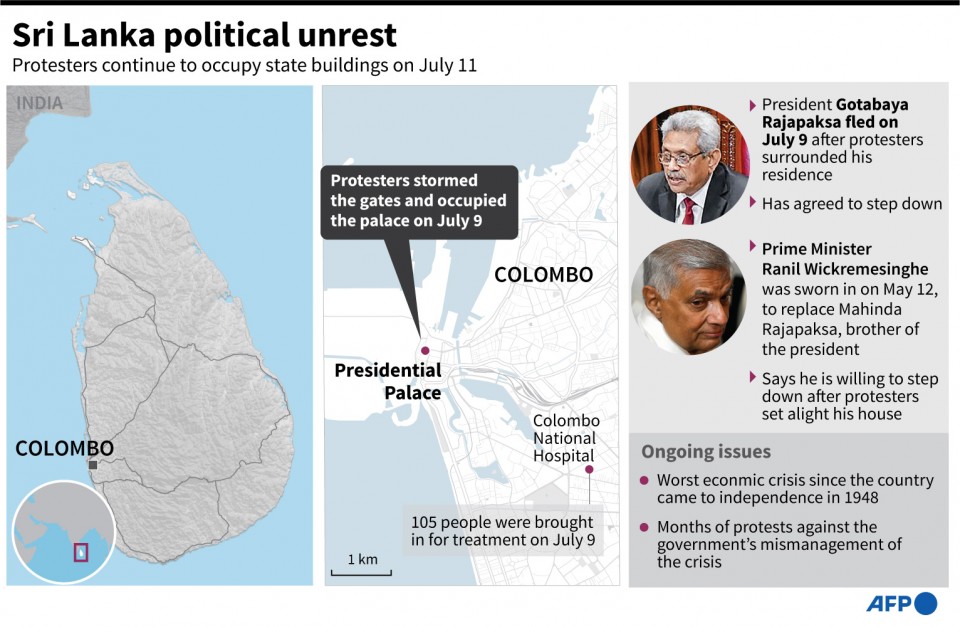 Protesters captured Rajapaksa’s sea-front office shortly after overrunning the palace on Saturday and have promised to stay on until he actually leaves office.