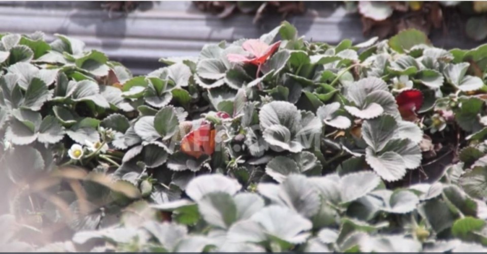 Strawberry plants covered with ashfall from Sangay volcano in Ecuador the last time that it erupted last year (Screenshot of AFP video/ Courtesy AFP)