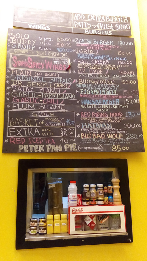 Another American-inspired restaurant. Burgers and fries are their front liners but what catches my attention is their selection of drinks. It doesn’t happen every day that you enter a small casual dining restaurant and find imported drinks on their menu, they have Hawaiian punch and different flavors of coke. Price range of products is reasonable too.