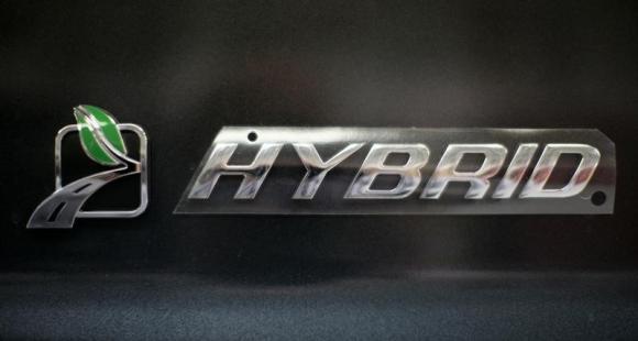 The logo of a Ford Escape hybrid vehicle is shown at the Ford Motor Company assembly plant in Claycomo, Missouri. March 20, 2007.