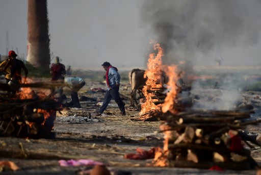 Elsewhere in the capital, AFP images showed the bodies of Covid victims burning on funeral pyres set up in rows, the earth between them scorched by embers and littered with ash.