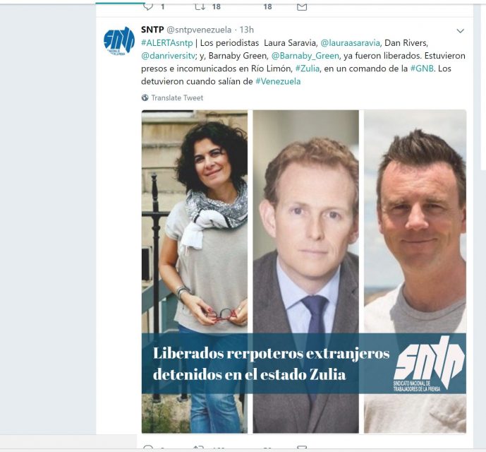They were detained “as they left the country” after having been in “Venezuela for three days reporting on tourism,” the union said earlier.
