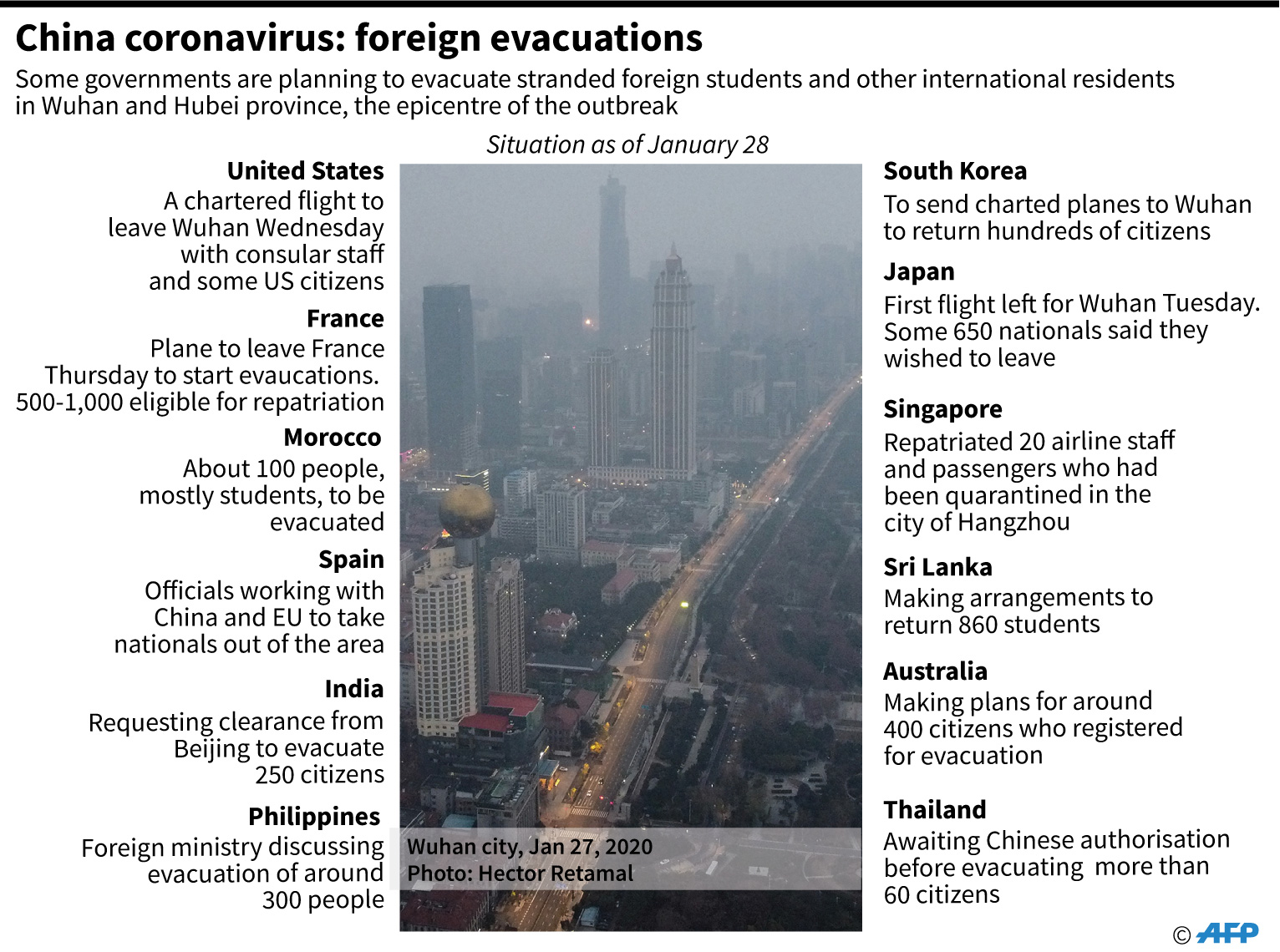 Japan and the United States on Wednesday were the first to evacuate some of their citizens from Wuhan.