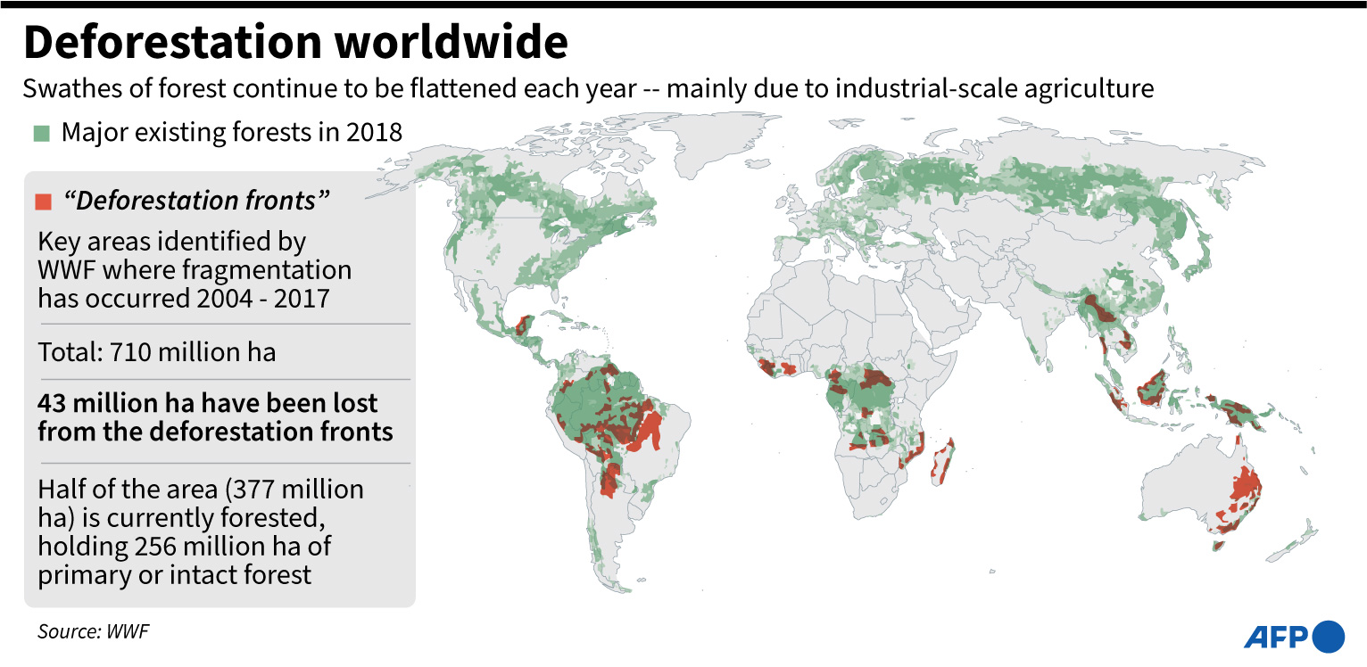 PARIS, France (AFP) — More than 43 million hectares of forest — an area bigger than Germany — have been lost in a little over a decade in just a handful of deforestation hotspots, conservation organisation WWF said Wednesday.