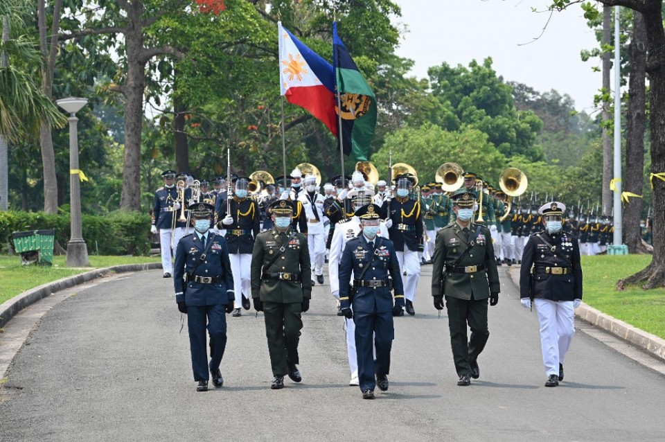 AFP chief of staff General Cirilito Sobejana then handed over the carefully folded Philippine flag to the eldest of the Aquino siblings, Ballsy Aquino Cruz.