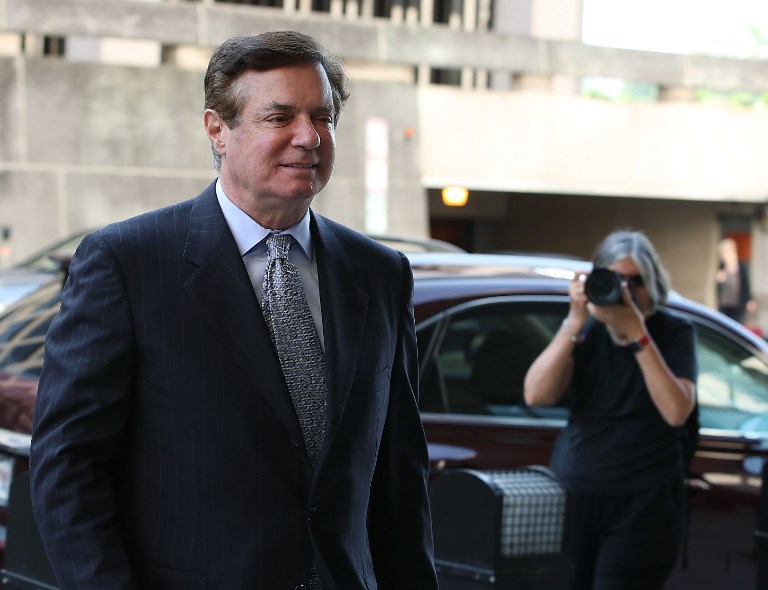 FILE PHOTO: Former Trump campaign manager Paul Manafort arrives for a hearing at the E. Barrett Prettyman U.S. Courthouse on May 23, 2018 in Washington, DC. Manafort was indicted last year by a federal grand jury and has pleaded not guilty to all charges against him including, conspiracy against the United States, conspiracy to launder money, and being an unregistered agent of a foreign principal. Mark Wilson/Getty Images/AFP