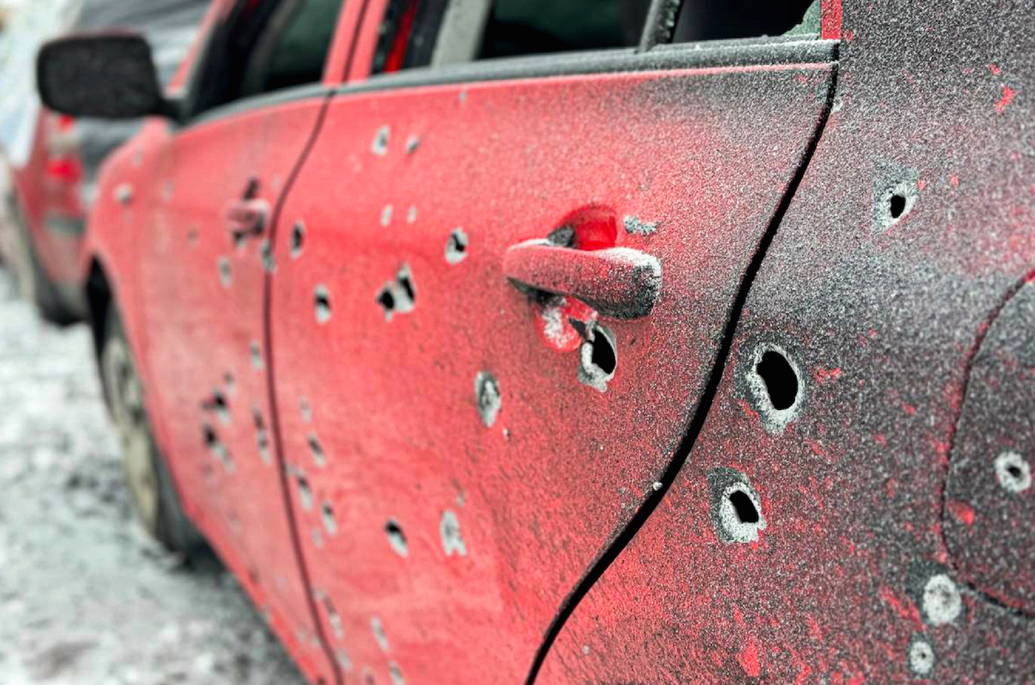 This handout photograph published on the official Telegram account of Belgorod region governor Vyacheslav Gladkov, on January 5, 2024, shows damage to a car following a missile strike in Belgorod. – The Russian city of Belgorod bordering Ukraine urged residents to secure their windows with tape to protect them from frequent Ukrainian shelling. (Photo by Handout / Telegram / @vvgladkov / AFP)