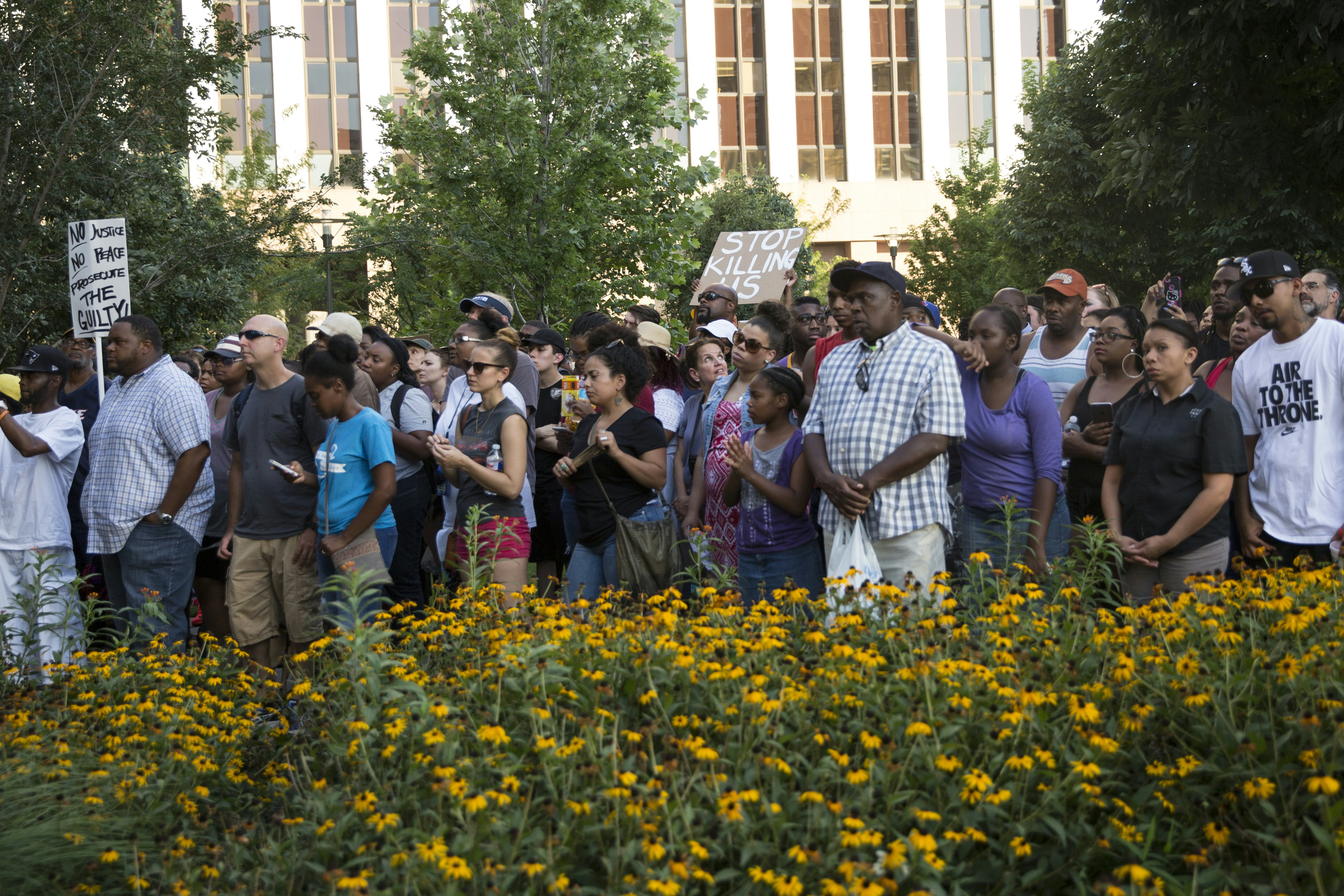 The protests were part of demonstrations taking part in several cities against the fatal police shootings of African American men in Minnesota and Louisiana this week.