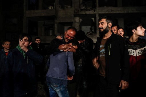 A huge blast killed at least 13 civilians in Syria’s northwestern jihadist-held city, a monitor said, as an AFP reporter said it wrecked a multi-storey building. / AFP PHOTO / Sameer al-DOUMY