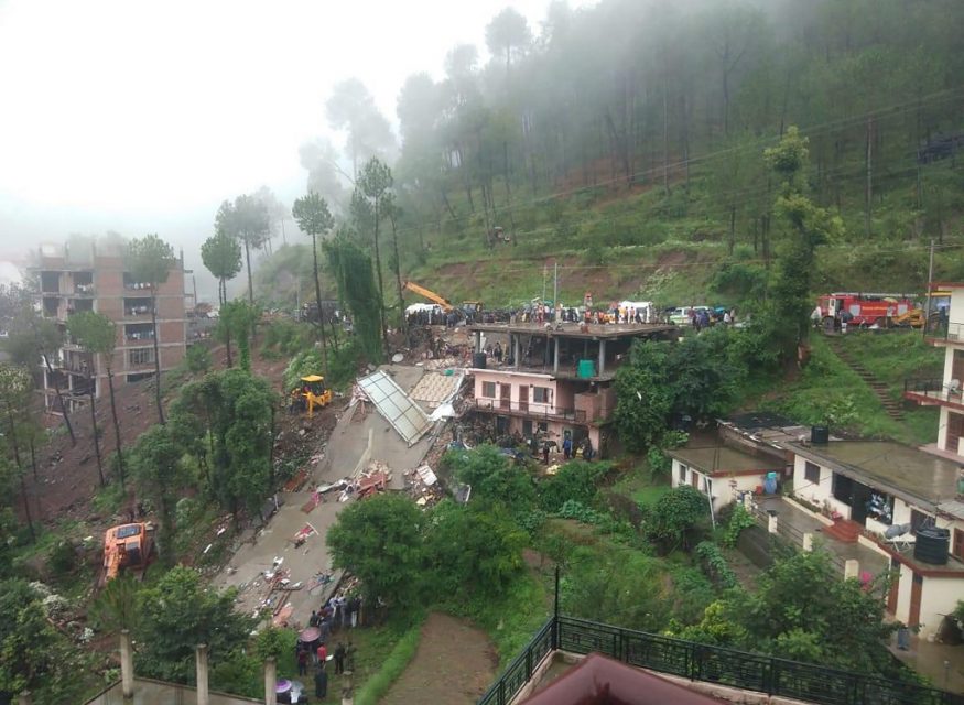In the latest monsoon-related tragedy in India, a four-storey building on a hillside in the northern state of Himachal Pradesh collapsed, trapping those who had gathered for a party inside.
