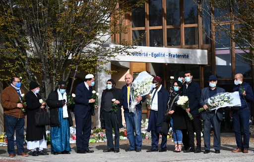 Emotions ran high outside Paty’s school on Monday, where Muslim leaders gathered to offer condolences and distance their religion from the atrocity.