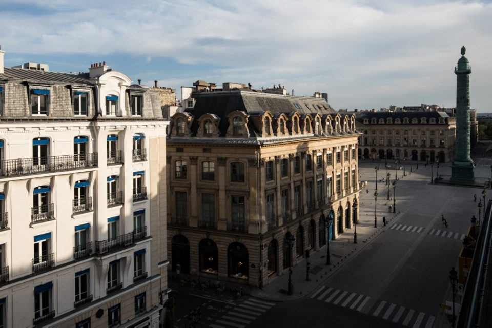 This picture taken on April 20, 2020 shows the deserted Place Vendome square in Paris, on the thirty-fifth day of a lockdown in France aimed at curbing the spread of the COVID-19 disease, caused by the novel coronavirus. (Photo by JOEL SAGET / AFP)