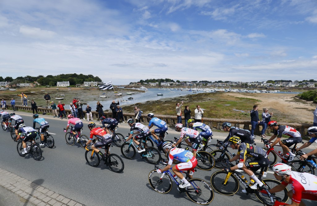 Despite these efforts the peloton had to slow down in sections due to massed ranks of spectators along Brittany’s Cote d’Armour coast spilling onto the course and narrowing it significantly.