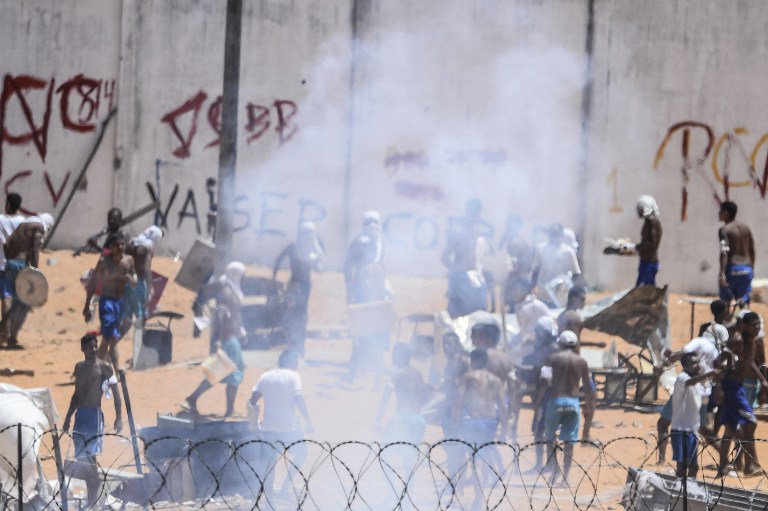 NATAL, Brazil (AFP) – Stick-wielding inmates hurled stones and lit fires Thursday in a Brazilian jail where dozens were previously massacred, as authorities struggled to contain a spreading wave of gang violence.
