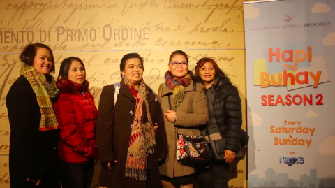 From a contemporary culture hall in Itabashi, Tokyo to a colonnaded cinema center in Rome, Italy, Filipinos are unabashedly overjoyed by the screenings of Hapi ang Buhay, the first inspirational situational comedy of Eagle Broadcasting Corporation (EBC). The show, now running on its 2nd season, is produced in cooperation with INCinema Productions.