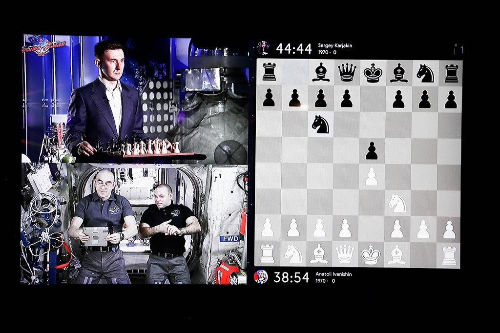 Equipped with an electronic chessboard, cosmonauts Anatoly Ivanishin and Ivan Vagner played in zero gravity against 30-year-old Russian former child prodigy Sergei Karyakin.