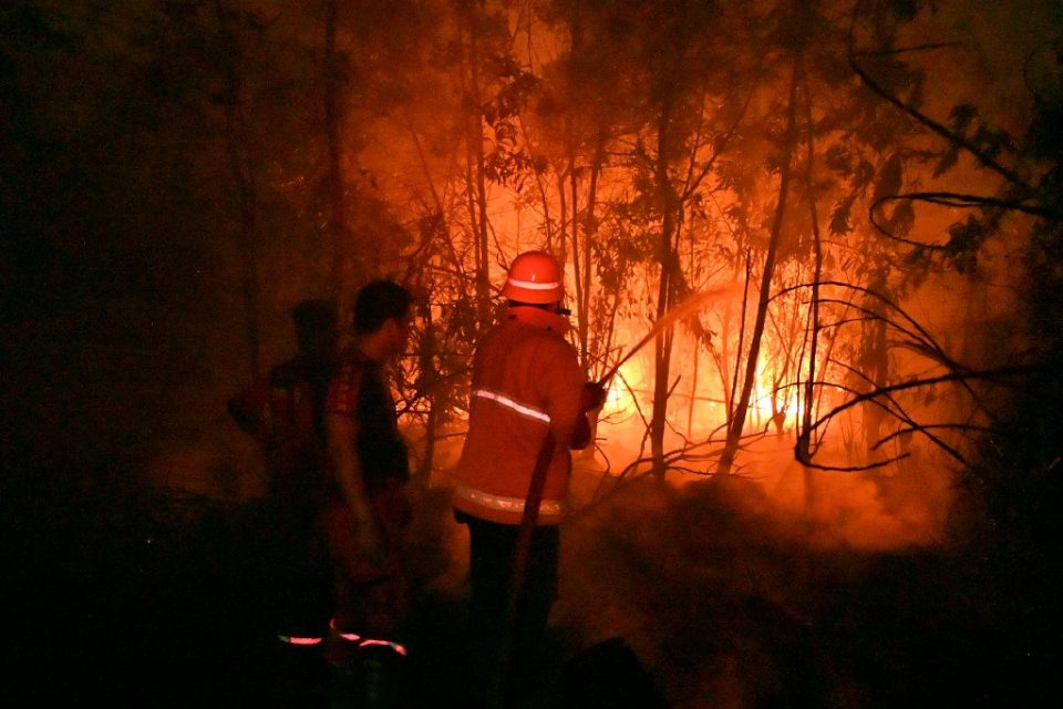 PEKANBARU, Indonesia (AFP) — Working around the clock, thousands of firefighters are struggling to contain smog-belching blazes raging across rainforests and farmland in Indonesia, one of the frontlines against fires blamed for aggravating global warming.