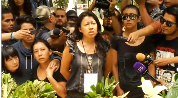 Ruben Espinosa’s sister, Patricia, speaking during her brother’s funeral. (Photo grabbed from Reuters video)
