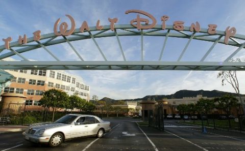 a car leaving the main entrance to the Walt Disney Co. office and studio complex in Burbank, California./ AFP/