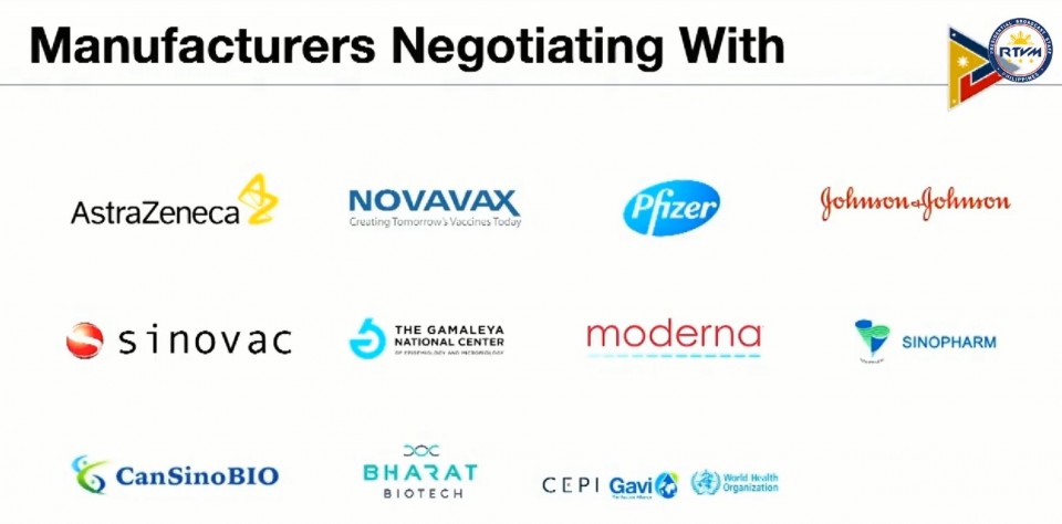 These vaccine manufacturers which Galvez listed in his presentation are the following: