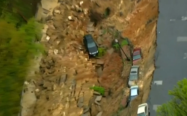 (Reuters) — A giant sinkhole opened on a rain-soaked street in Baltimore, Maryland on Wednesday (April 30). The large crater swallowed up part of a street and several parked cars and buried train tracks under a pile of rubble.