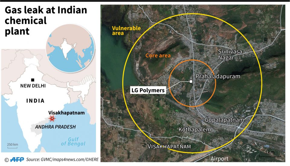 The plant, operated by LG Polymers, a subsidiary of LG Chem, is on the outskirts of Visakhapatnam.