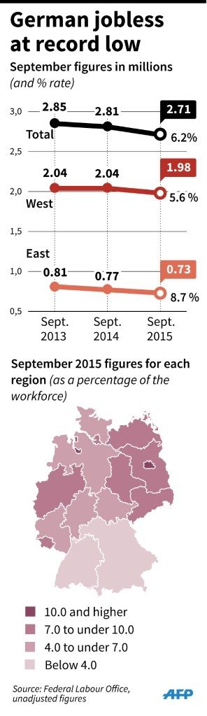 “The German economy is expected to show tangible growth in the first quarter of 2016, even if the level of growth won’t be maintained over the course of the year,” the labour office said.
