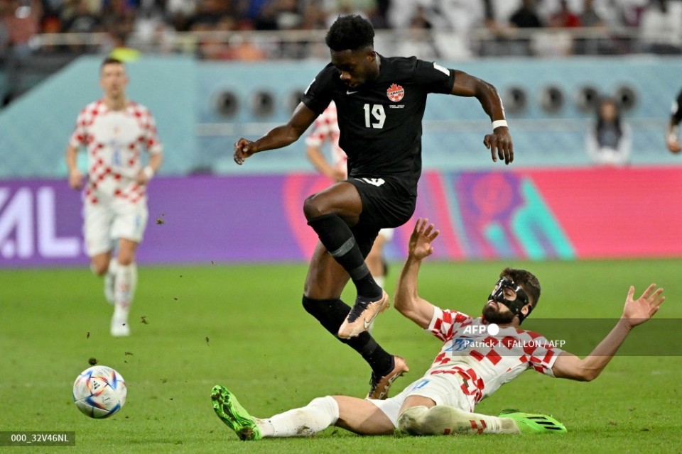 Canada’s forward #19 Alphonso Davies is challenged by Croatia’s defender #20 Josko Gvardiol during the Qatar 2022 World Cup Group F football match between Croatia and Canada at the Khalifa International Stadium in Doha on November 27, 2022. (Photo by Patrick T. FALLON / AFP)