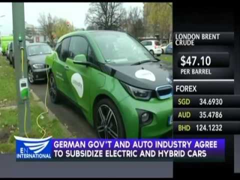 The German government and auto industry has agreed to subsidize electric and hybrid cars. As David Pollard reports, buyers will get a premium of 3,000 euros or more.