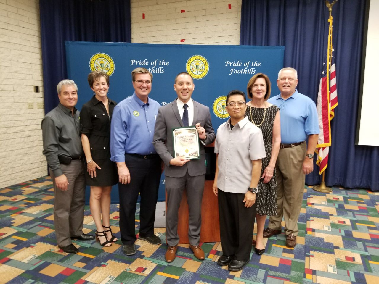 Iglesia Ni Cristo Local Congregation of Glendora receives Certificate of Recognition from City of Glendora for recent community service aid in their Adopt A Park program. Oliver Medina accepted the certificate on behalf of the congregation. Photo by Ken Cruz, EBC Los Angeles Bureau.